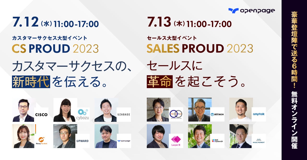また、2023年7月12日(水)〜 2023年7月13日(木)の2日間にわたり、今年はカスタマーサクセスに加えセールスもテーマに全12時間の大型オンラインイベントを開催いたします。営業やカスタマーサクセスに取り組む上でのキャリア向上、組織改革、事業戦略構築、テクノロジー戦略を一度に学ぶことができる内容となっておりますので、こちらも是非ご参加ください。