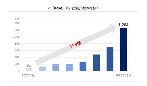 2021年8月に91戸でスタートした「Kolet」は、これまで継続的に物件を取得してきました。今回の557戸の追加取得により2022年12月23日時点で累計1,264戸(全て新築物件)、資産規模は539億円となりました。また、2022年3月までに取得した「Kolet」の平均稼働率は96.6%に達し、稼働率・賃料ともに当初想定を上回る水準で推移しています。