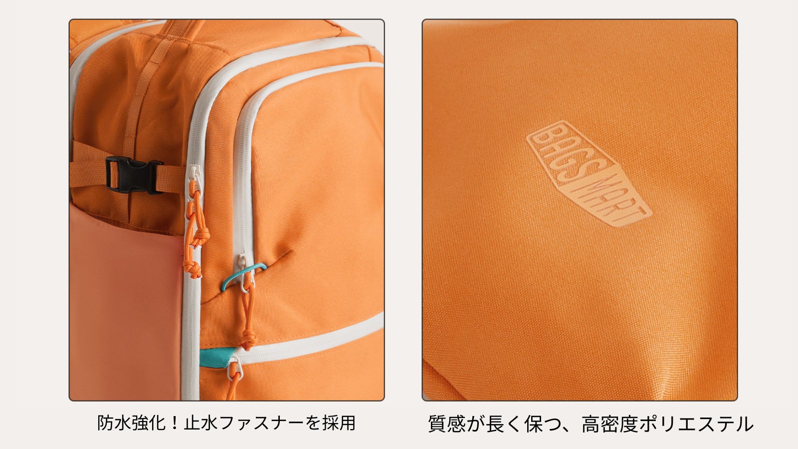 本製品には、軽さと耐久性のバランスに優れた300デニールの高密度オックスフォードポリエステル生地を採用。独自の撥水加工により、高い防水性を実現するとともに、日常使いや旅行などさまざまなシーンでの長期間の使用にも耐える強さを備えています。