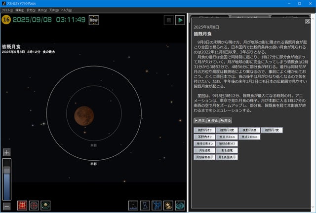 ●2025年の天文現象を再現「アストロガイドブラウザ2025」