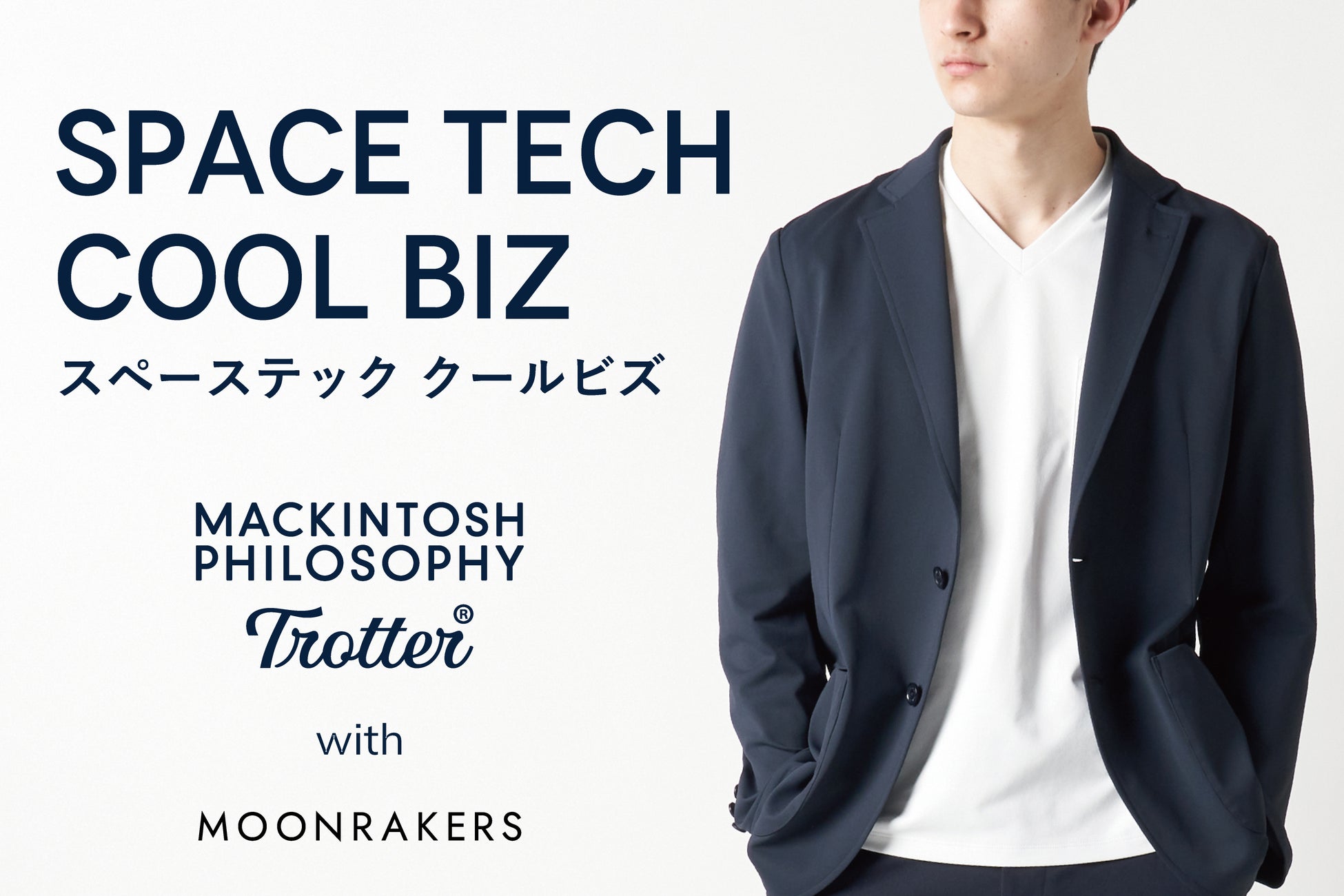 今回、「MOONRAKERS」は、機能性ビジネスウェアの先駆者でもある英国発祥の「MACKINTOSH PHILOSOPHY」とのコラボレーションで、従来のファッションビジネスの「在庫を持ち、売り減らし、売り切れない商品はセールで在庫を消化する」というスキームからの脱却に挑戦しました。