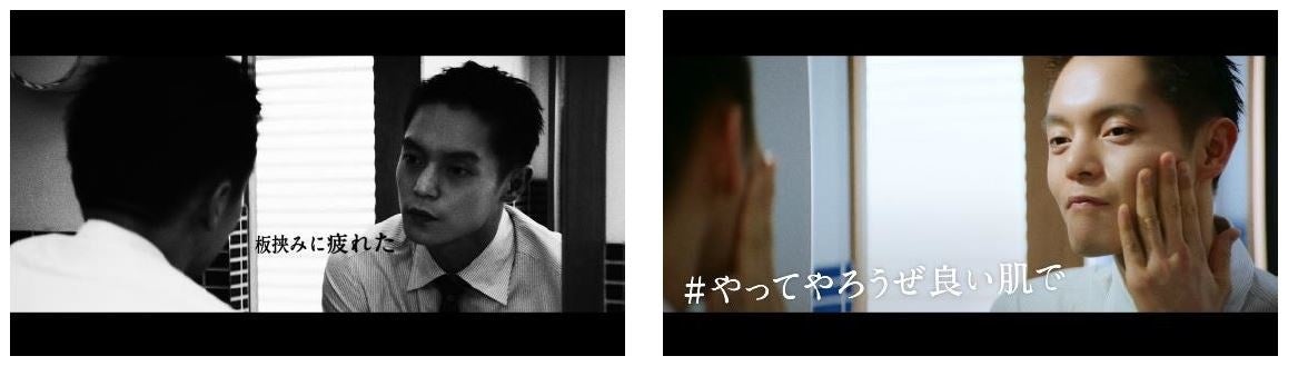 WEB限定ムービーとして、「#やってやろうぜ良い肌で」を公開します。マネージメントポジションの竹野内さん、中間管理職的立ち位置の窪田さん、新人の高杉さん。それぞれのポジションのだからこその悩み、迷い…、そして、そこからのスキンケアをすることによるポジティブなギアチェンジを表現したエモーショナルバージョン。