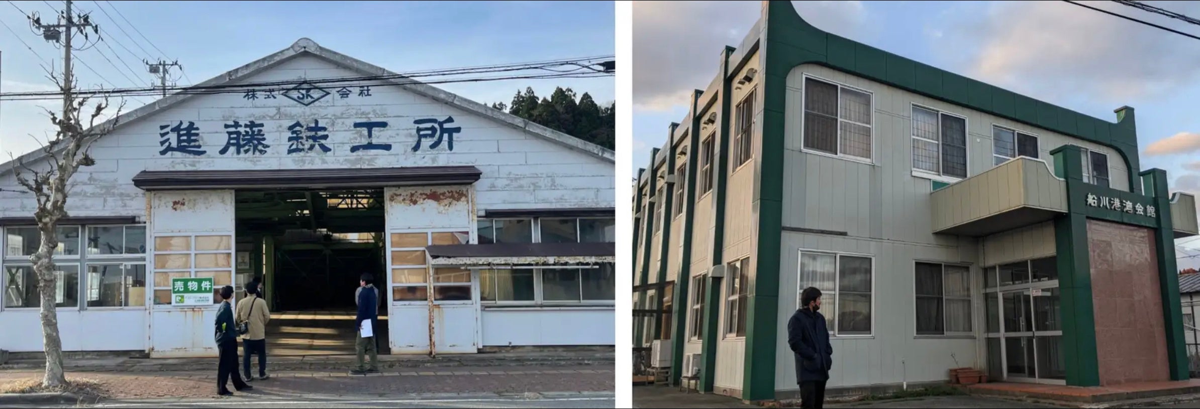 (左)鉄工所を活用しクラフトサケ・ジンを核に人が集う場に。蒸留所、オフィス、イベントスペース、飲食店が集合する。(右)港湾労働者の宿泊施設だった建物は、訪れる人々が気軽に快適に泊まれる、海沿いのホステルへと生まれ変わる。