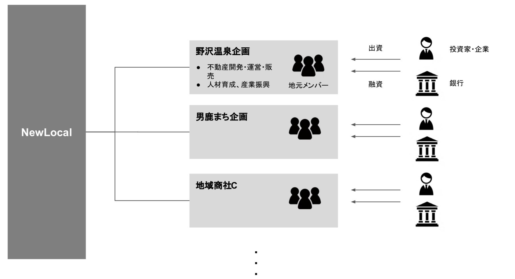 NEWLOCALは「地域からハッピーシナリオを共に」をミッションに、不動産開発を中心としたまちづくりを行い、人口減少時代に持続可能な地域モデルの実現を目指しています。独自の魅力を持ち意思と行動力のある人々がいる地域で、地域の想いに寄り添い、人・アイディア・資金を集めることで、スピード・スケール・再現性のあるまちづくりを行います。 現在は、長野県野沢温泉・御代田町、秋田県男鹿市の3つの地域で事業を展開しており、今後5年間で10地域への拡大を目指しています。