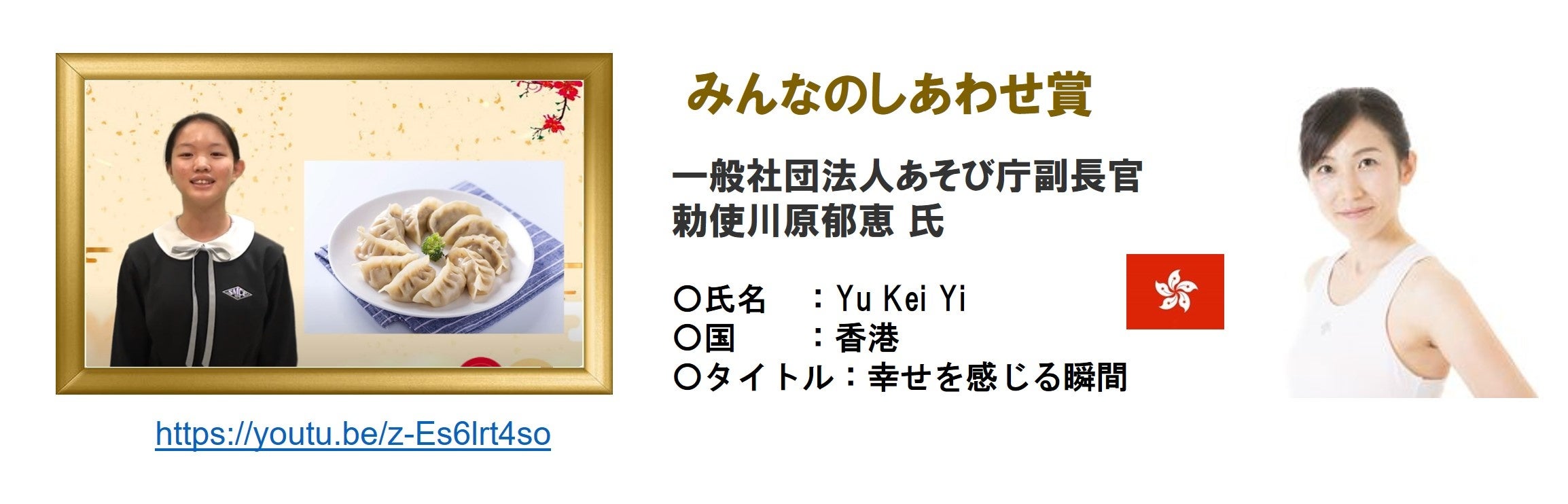 伝統的な祝日である旧正月を家族一緒に過ごすことがかけがえのない時間であり、家族の幸せを育むためにとても大切なことだと伝わりました。表情豊かに表現されていて、話を聞いているこちらも幸せな気持ちになりました。 また、餃子のルーツもわかりやすく伝えているところが良かったです。