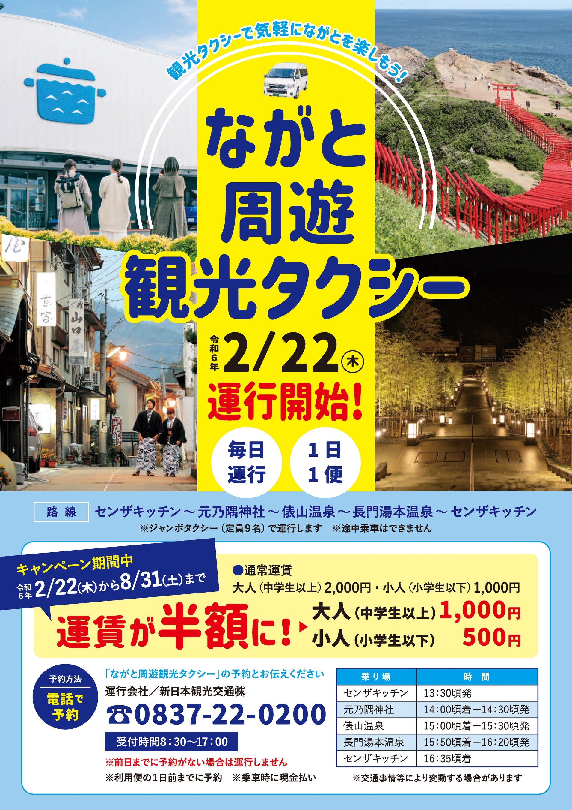 新日本観光交通(株)TEL:0837-22-0200(受付時間8:30~17:00)