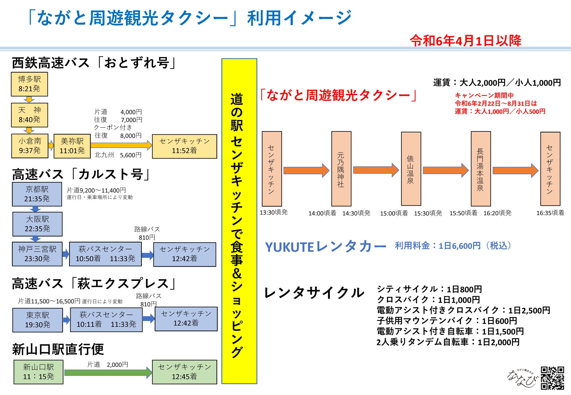 ≪ながと周遊観光タクシー利用イメージ≫※令和6年4月1日以降のダイヤで表示