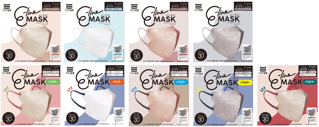 コロナの影響でマスク着用が日常化し、ニーズも多様化していきました。コロナが落ち着いた後も、“あえてマスクを着けたい”と思ってもらえるマスクを目指し、ミリ単位までビジュアルにこだわって設計したのが、このE-lineMASK。E-lineMASKは、「エステティックライン(E-line)」と呼ばれる“理想的な美しい横顔・口元ライン”を再現しました。マスクもメイクのひとつで、着けることで、「気分も自信も上がる」、自分を引き立ててくれるマスクです。