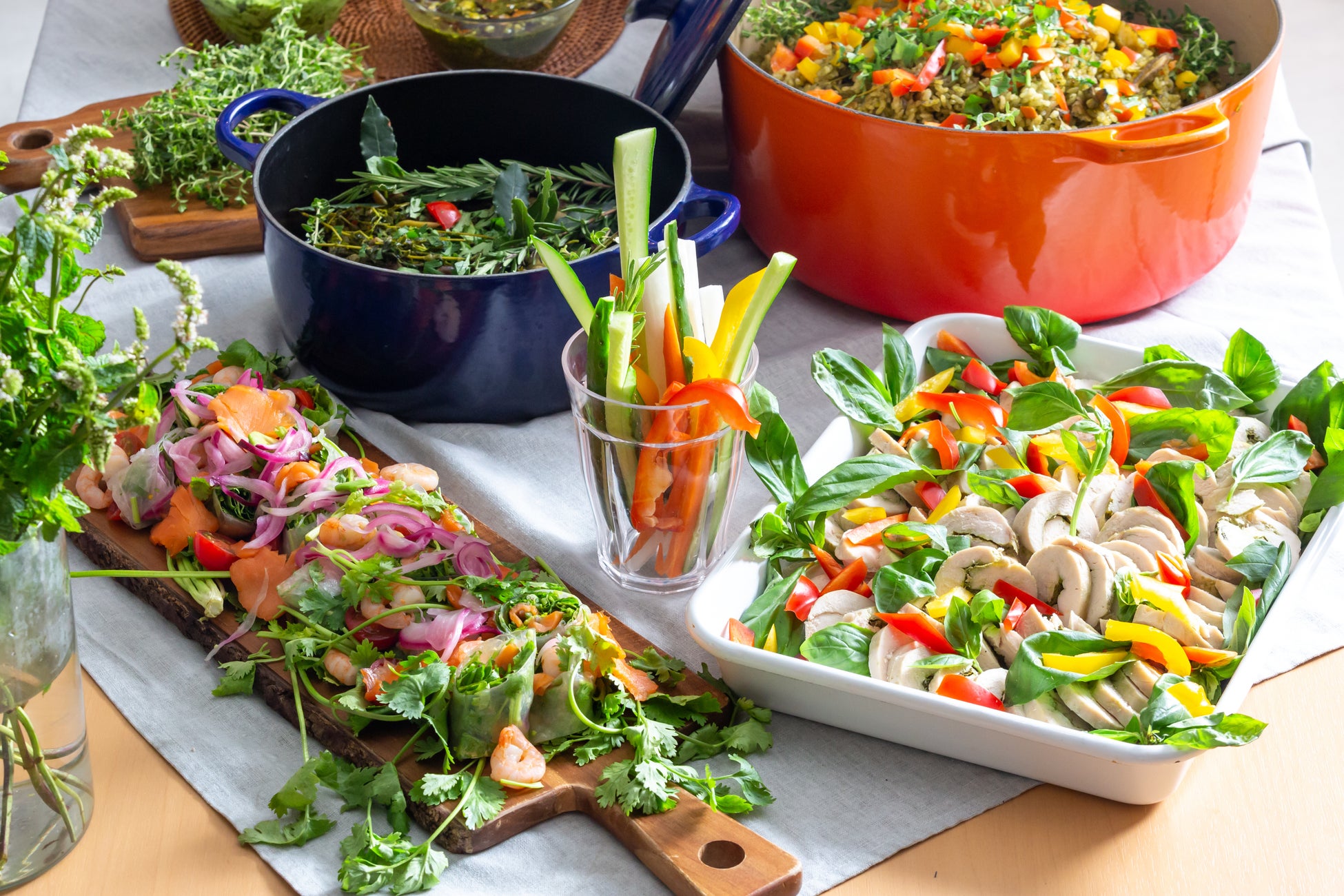 カラフルで鮮やかな色彩のハーブ料理の数々に思わず参加者の皆様から歓声が。普段なかなか見る機会のない大量のハーブによって会場全体がハーブの優しい香りに包まれていました。