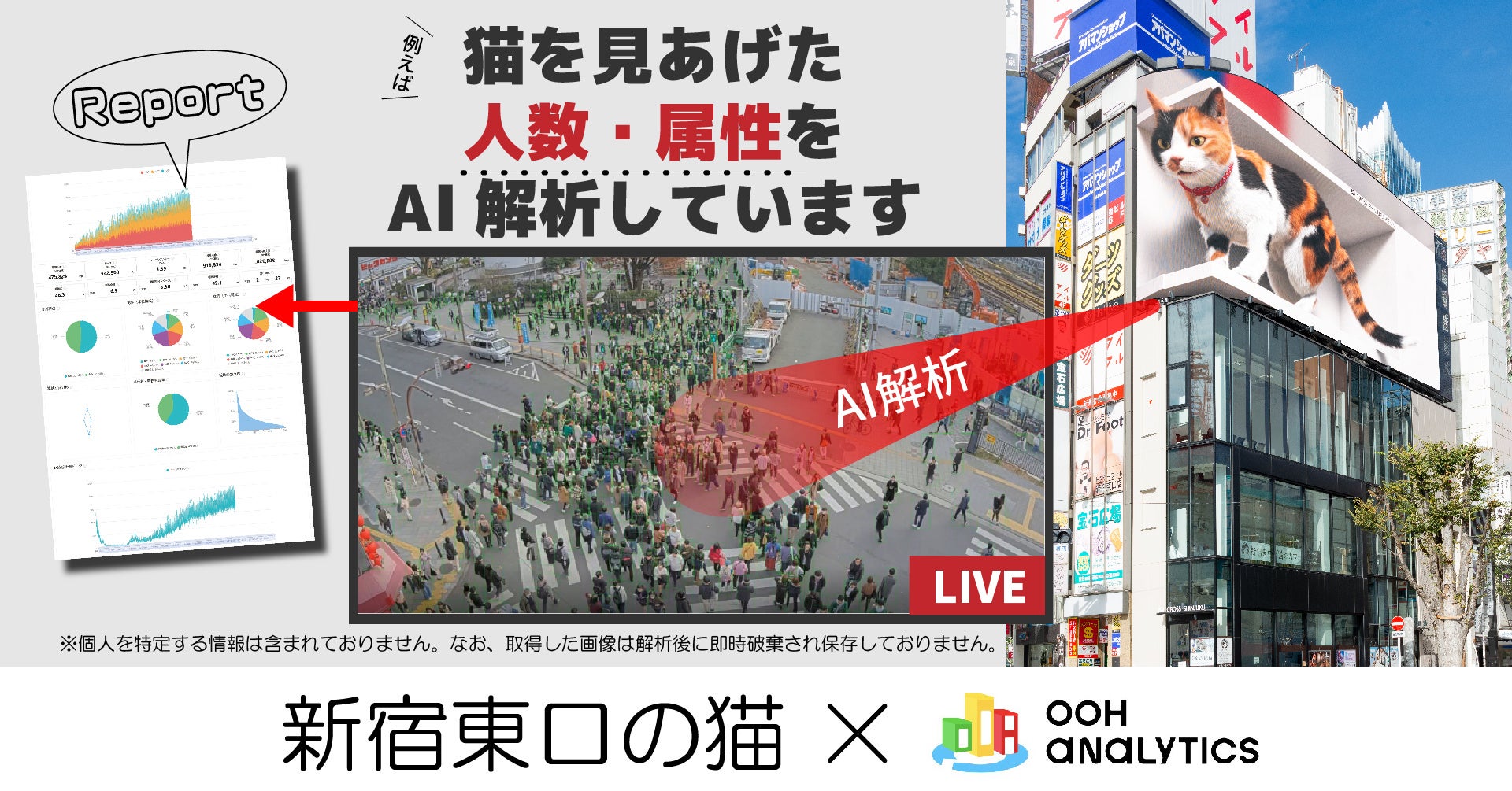 “3D巨大猫”で知られた『クロス新宿ビジョン』は、人流の画像や空間データのAI解析を導入。リアルタイムの視聴者数・属性の計測が可能になり、より効果的で使いやすいサイネージへと進化。