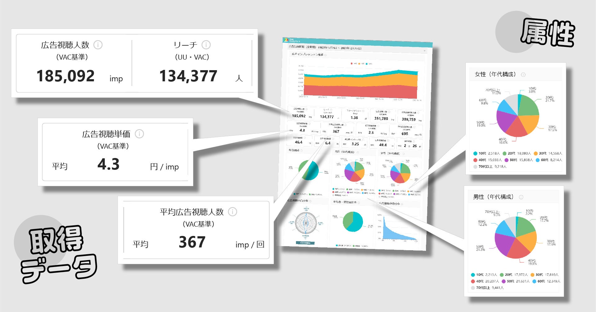 従来は過去調査における周辺滞在者数の把握にとどまっていたところ、出稿広告の実際の視聴者数し、費用対効果を把握できるようになったことが、『OOH Analytics』の導入の大きな効果となっています。