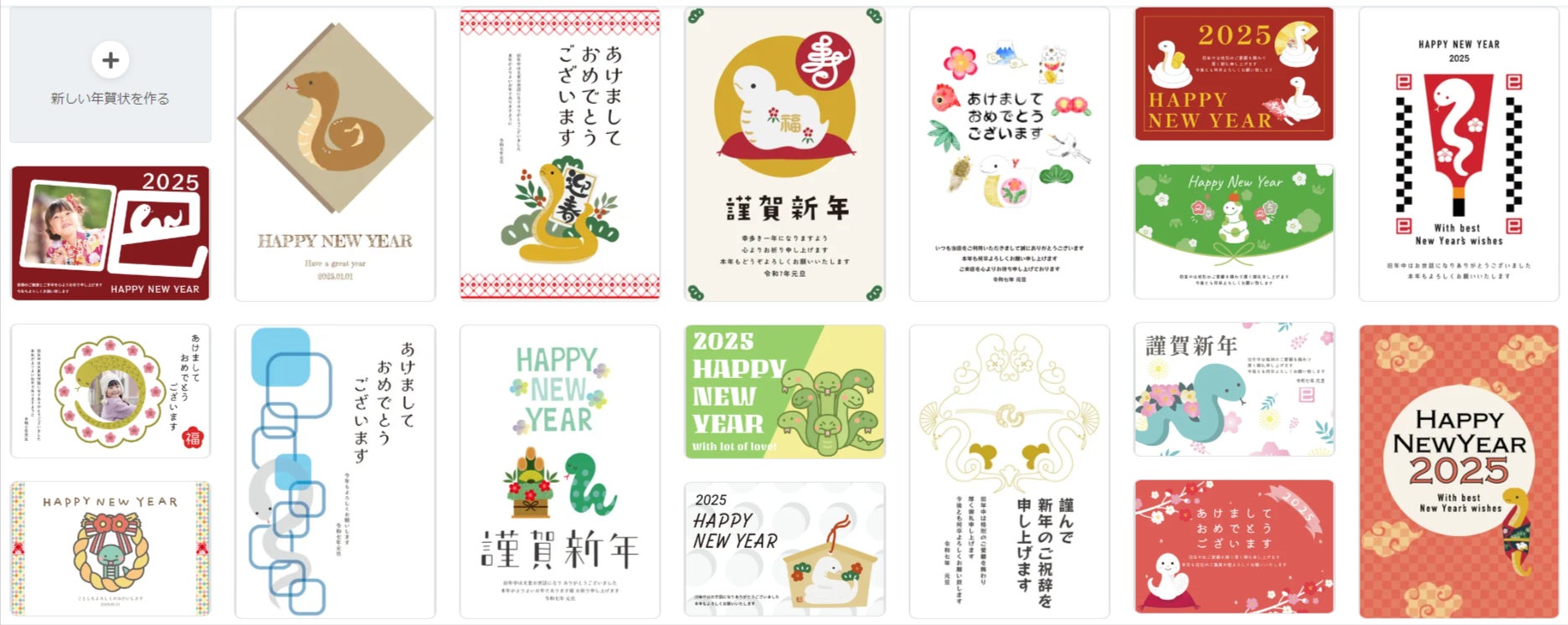 どのテンプレートも無料でダウンロード可能。文章の追加や写真の差し替えなど、直観的な編集画面でかんたんに操作していただけます。作成したデザインはマイページに自動で保存されるので、翌年以降もすぐに前回のデザインをチェックすることができます。特別なアプリなどのインストールは一切不要。オンライン環境ならいつでもどこでもご利用いただけます。