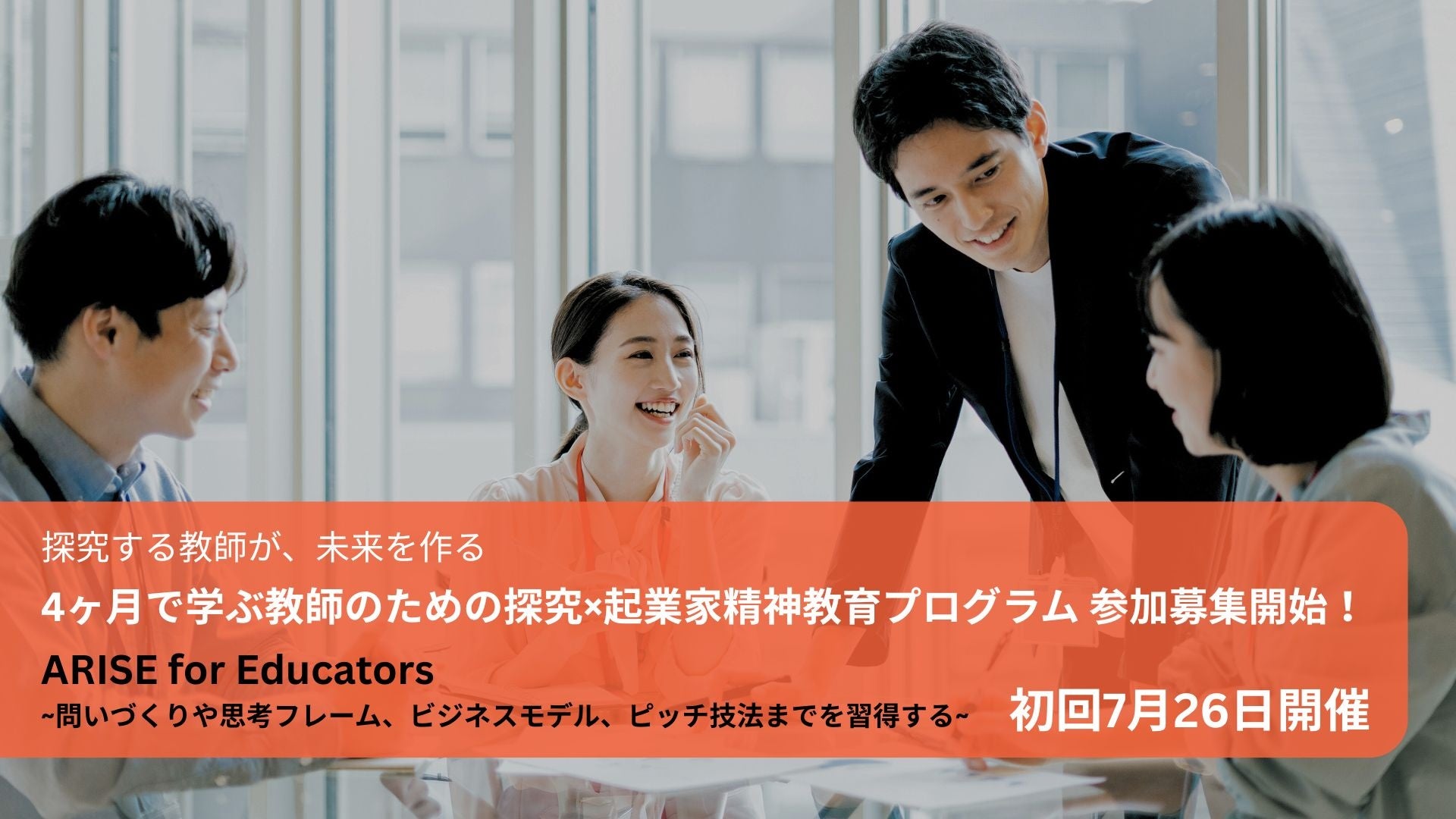 教師のための4ヶ月間 探究・アントレプレナーシップ教育プログラム「ARISE for Educators」募集開始!初回は7月26日から