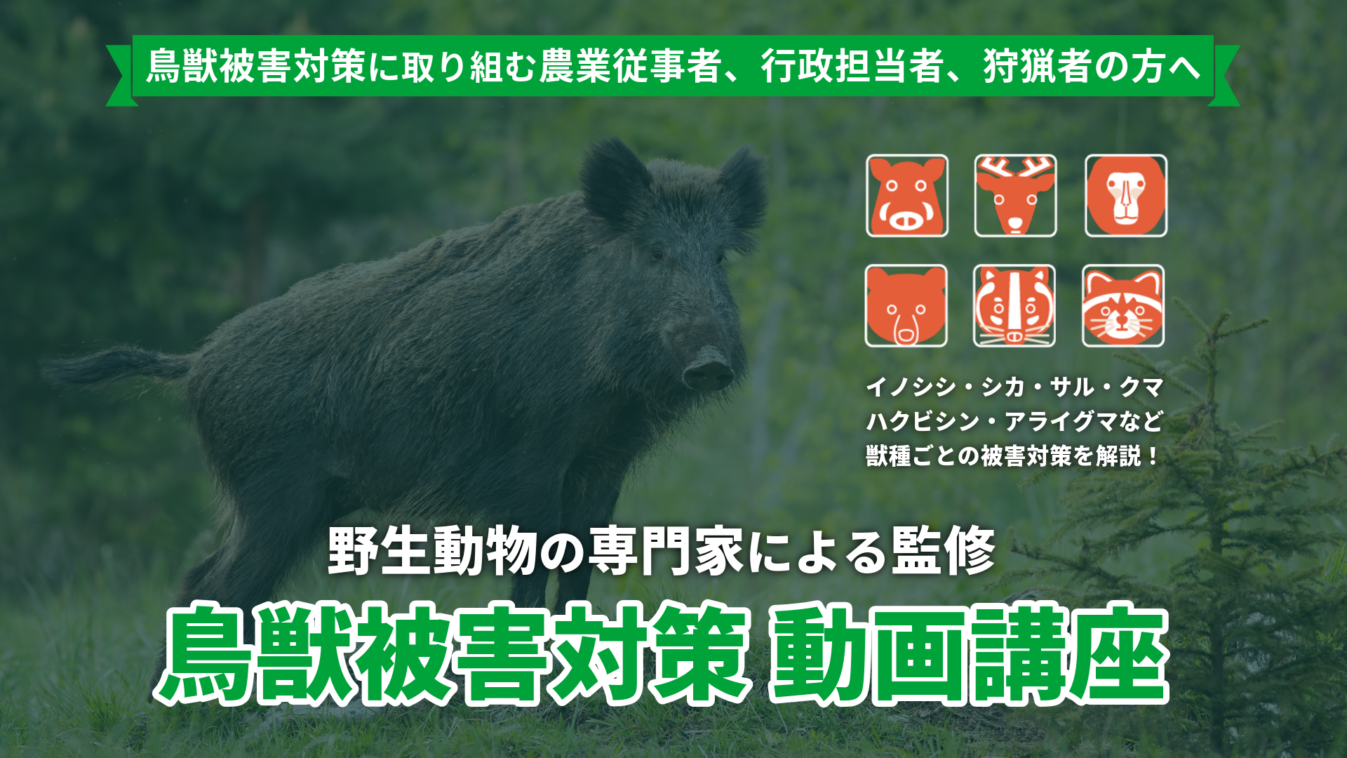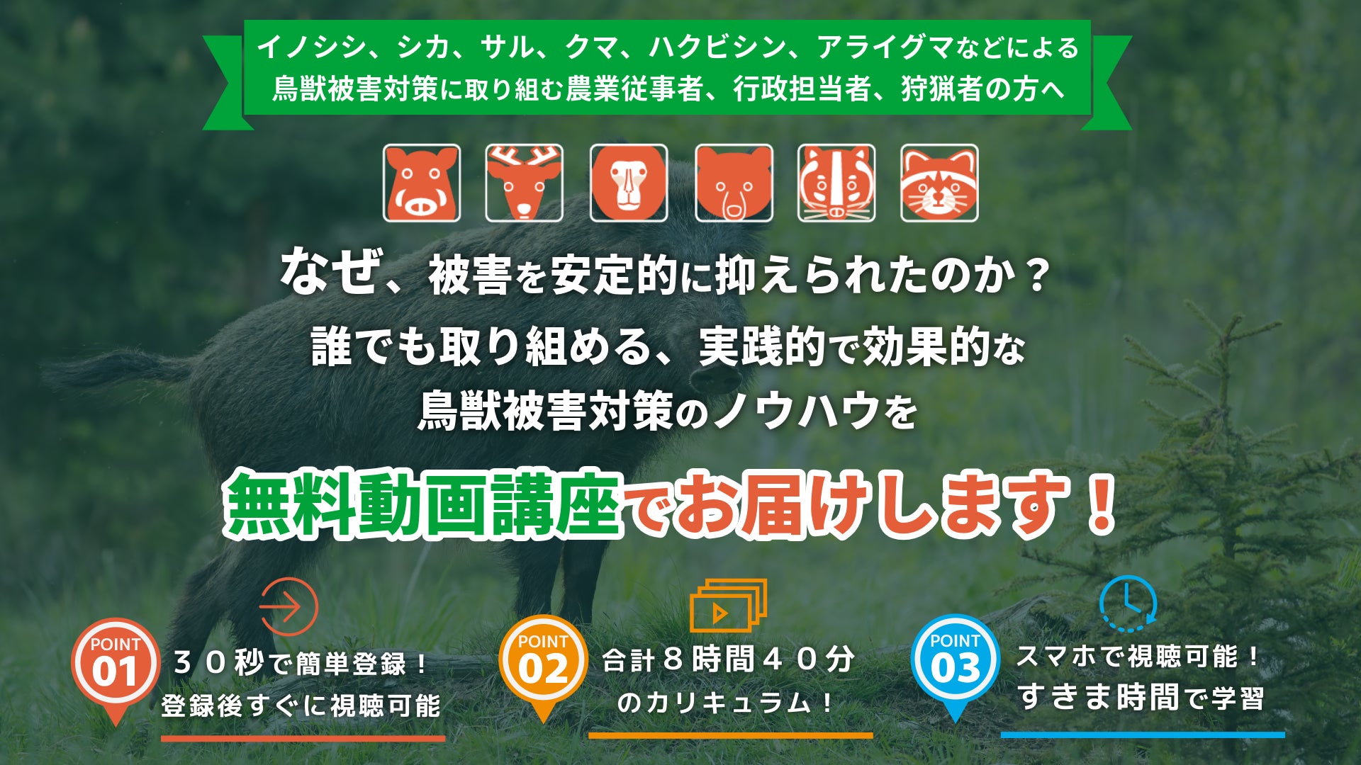 イノシシ、シカ、サル、クマなどの被害にお悩みの方必見!今すぐ役立つ対策手法を動画で学んでみませんか?