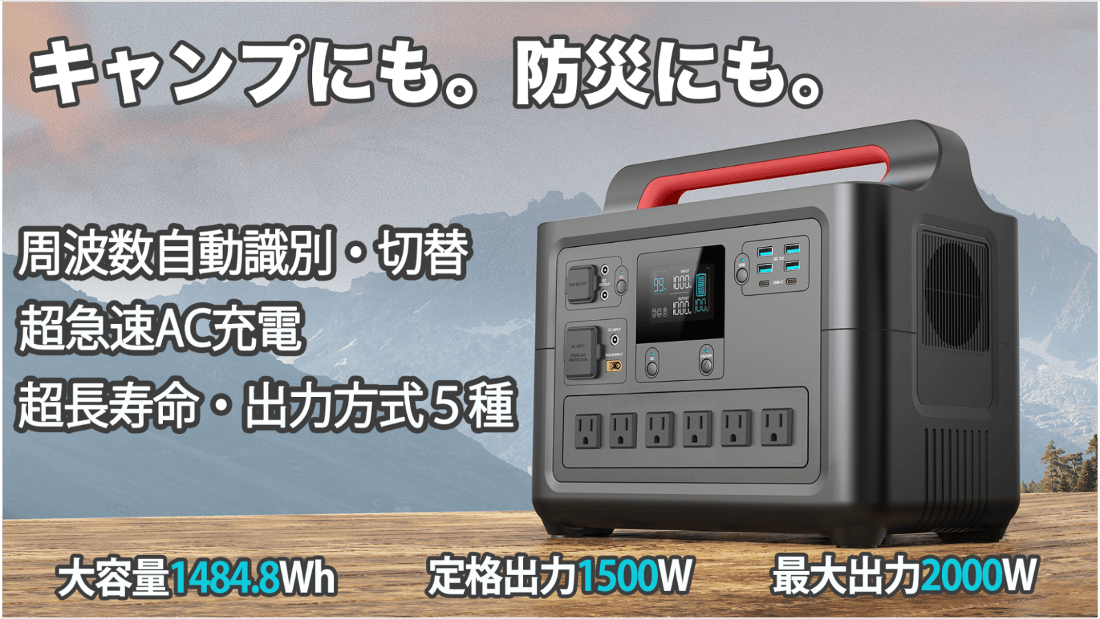 最大15台のデバイスを同時利用可能な100V定格消費電力1500W(最大出力2000W)の大容量電源です。
