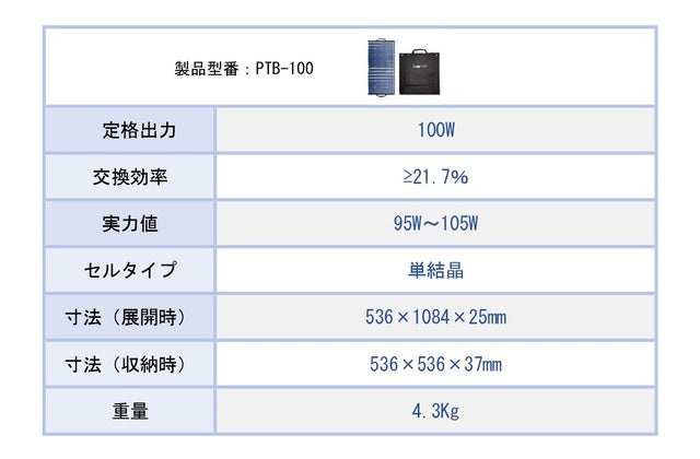 ソーラーパネル充電時間:15~22時間(100Wモデル使用時)