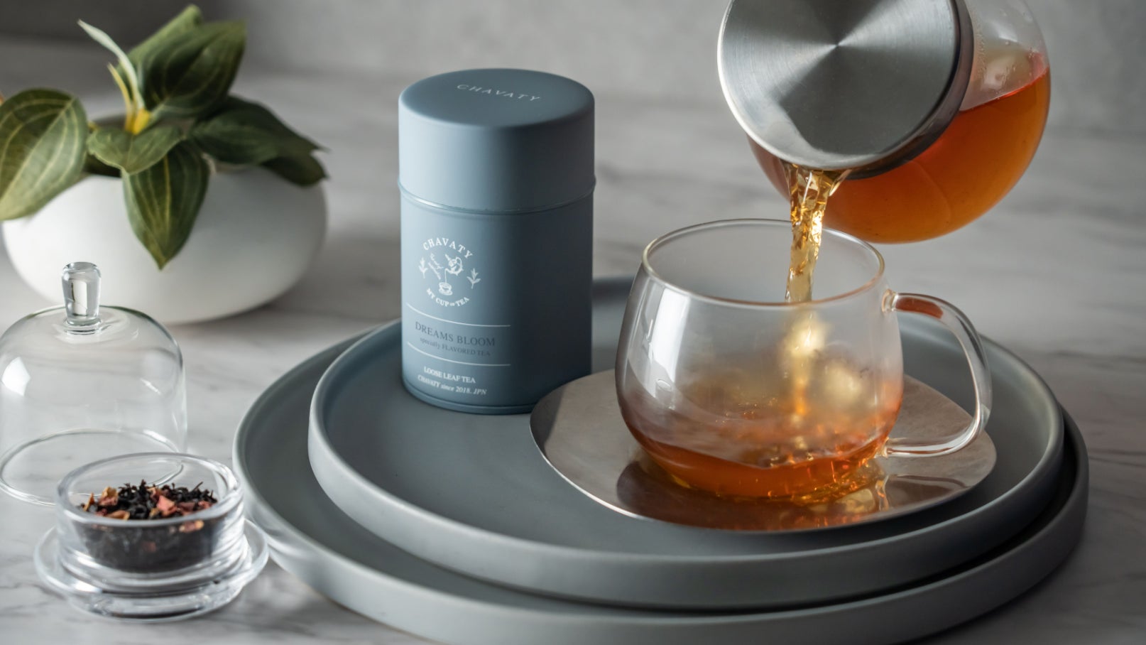5周年の節目を迎えるCHAVATYでは今年、ブランドの新たな展開として、オンラインショップと店舗において、オリジナルデザインのティーコレクションを販売開始いたします。フレーバーティーを始めとする茶葉は「THE ART OF INSPIRATION」のプロダクトコンセプトのもと、「ゆらぐ香りに癒され、穏やかな心地よさで満たされるような豊かなフレーバーと、すっと冴えるように目覚める感覚や、新たなひらめきを導くようなテイスト」をイメージしてデザインされました。華やかに香る個性的なフレーバーティーやオリジナルブレンドティー、シグニチャーのクオリティーシーズン・ウバなど、CHAVATY独自のお茶へのこだわりを詰め込み、新たに誕生したコレクションは、お茶を通じたこれまでにない創造性溢れるひとときを提案しています。