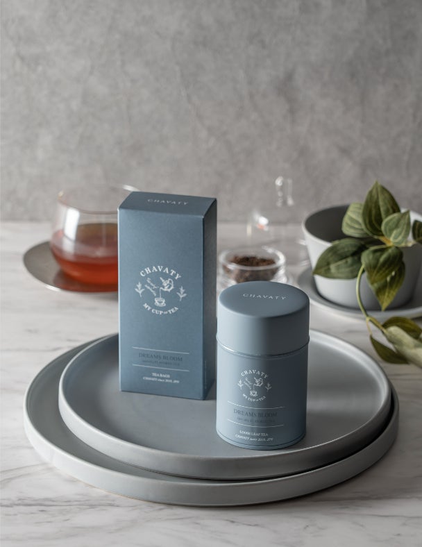 パッケージデザインは、CHAVATYグレーのシックな色合いとシンプルなホワイトの2色で仕上げ、サイズ感や質感といった手に取る際の心地よい感覚を大切にしました。また、リーフ缶はデザイン性と機能性を兼ね備えた、日本伝統の茶筒をセレクトしています。上質な日常やお茶を嗜むひとときを想い、デザインされたティーコレクションは、大切な方へのギフトとしてもぴったりです。缶はリーフ入り、箱はティーバッグ入りで各種ご用意しております。