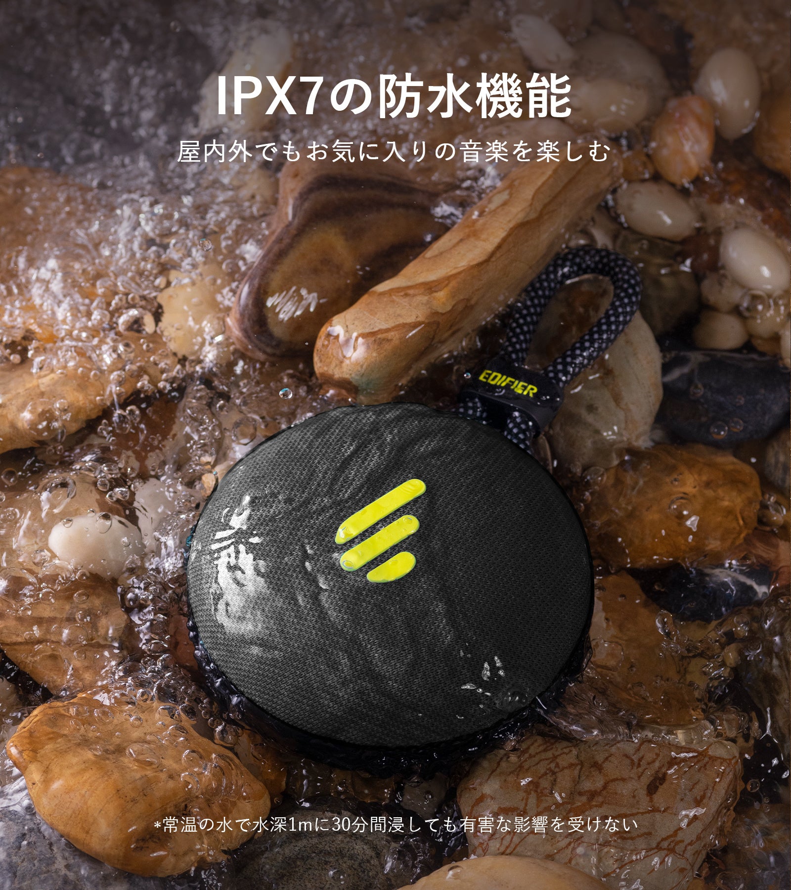IPX7の防水規格を備えたMP100 Plusワイヤレススピーカーは、水蒸気の影響を受けないのはもちろん、海や川でのキャンプ、BBQでも安心してお使いいただけます。