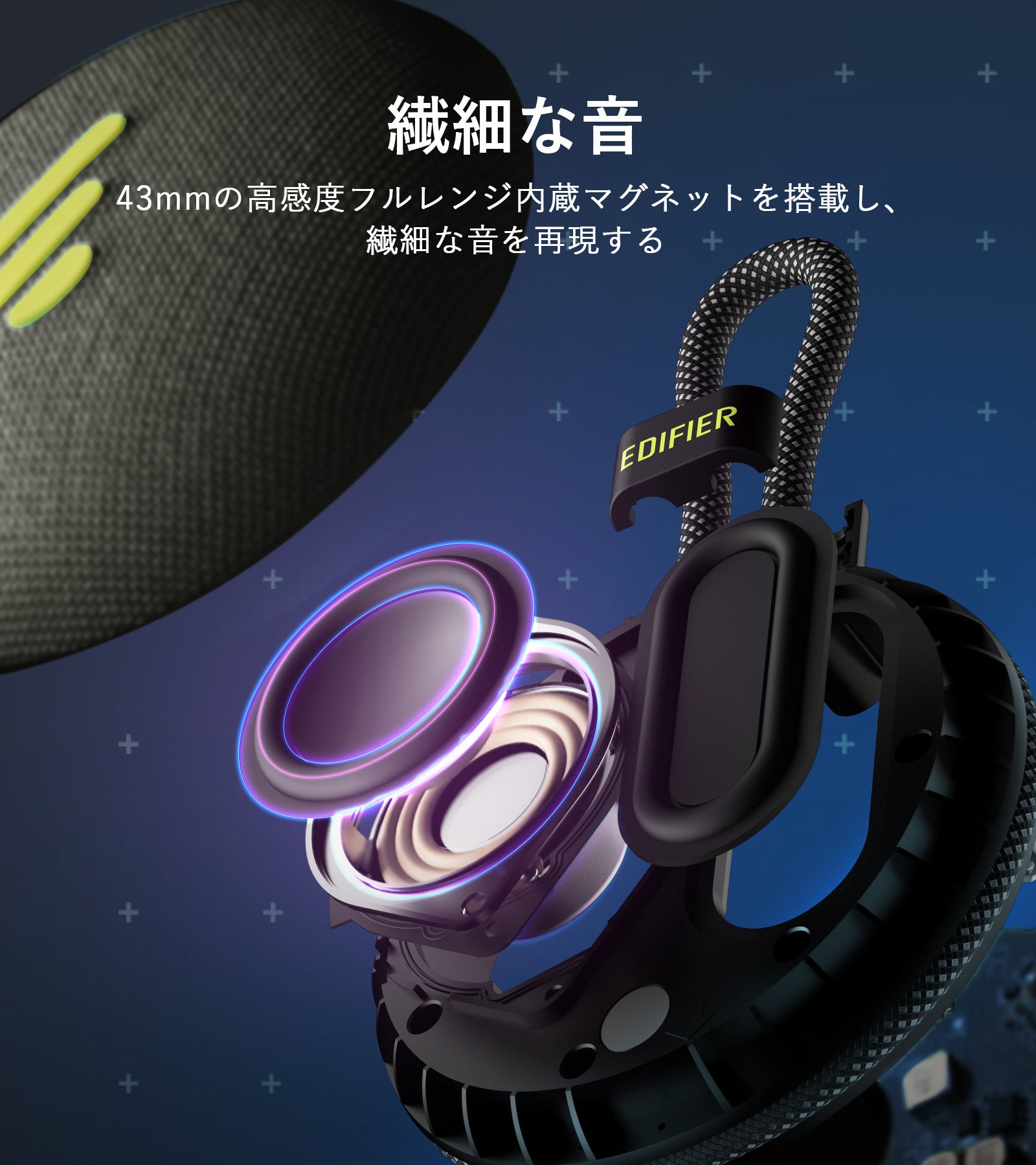 43mmの高感度フルレンジ内蔵マグネットを搭載。クリアで迫力のある音は、臨場感ある世界へと引き込み、最高の音楽体験を提供します。音楽や映画だけでなく、勉強やレッスンのシーンでも活用できます。