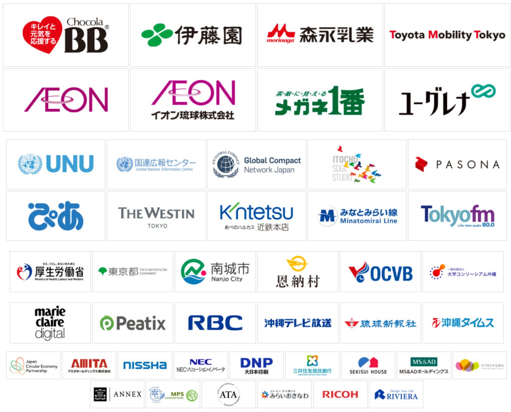 チョコラBB/株式会社伊藤園/森永乳業株式会社/イオン株式会社/ユニリーバ・ジャパン・カスタマーマーケティング株式会社/トヨタモビリティ東京株式会社/株式会社ユーグレナ/イオン琉球株式会社/メガネ1番/デルタ電気工業株式会社