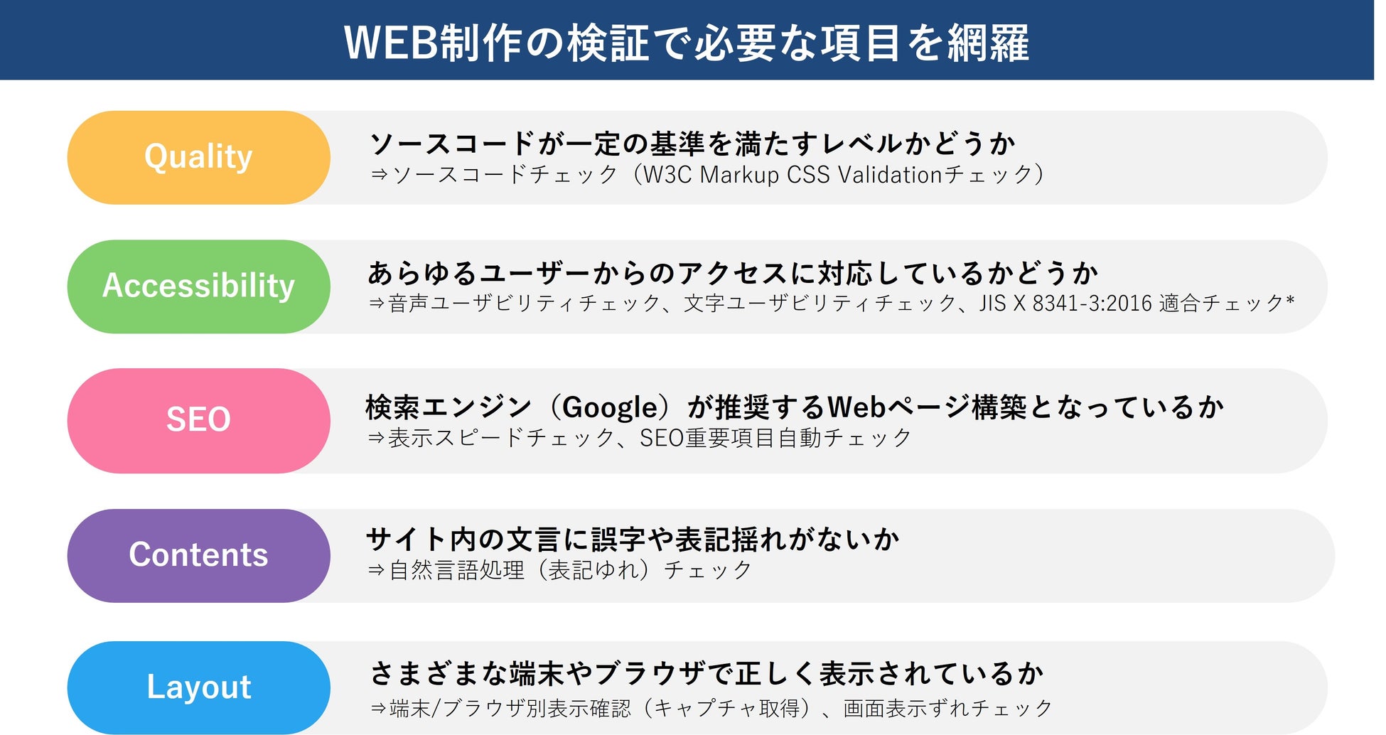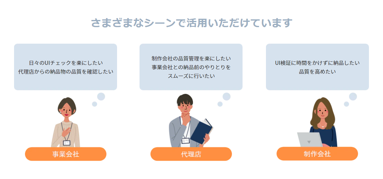 ▼WEBサイトのUI検証作業を「自動化」し、膨大な作業を一掃する「多機能型」のクラウドツールです。WEB制作会社・広告代理店・WEB事業会社・SEOコンサルティング会社様などに導入頂いております。