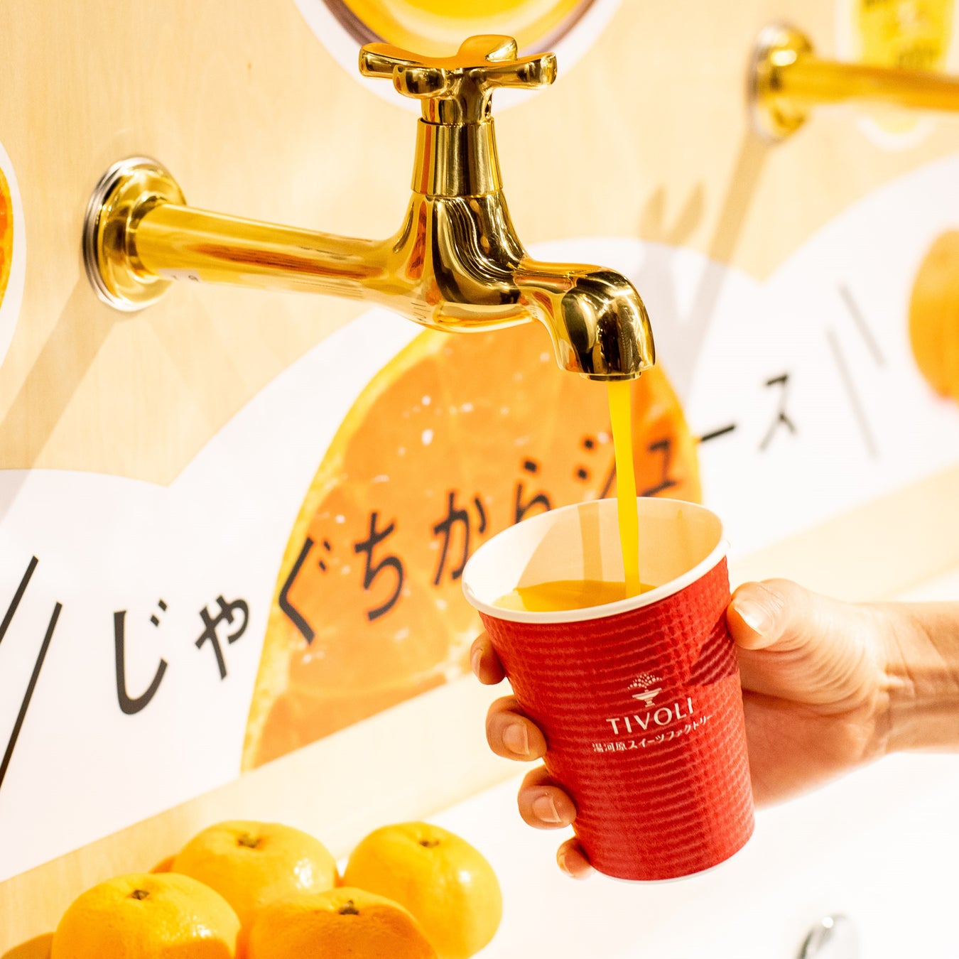 湘南の潮風が育む神奈川県湯河原町の『湯河原みかん』。特徴である酸味と香りをそのままに、100%ストレート果汁でご用意しました。段々畑の恵みが蛇口からあふれます。