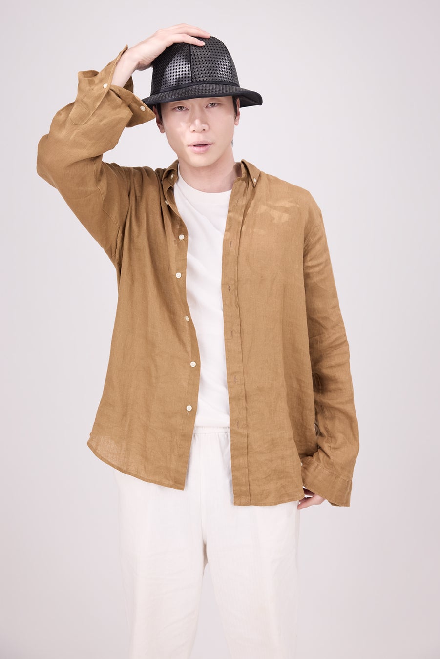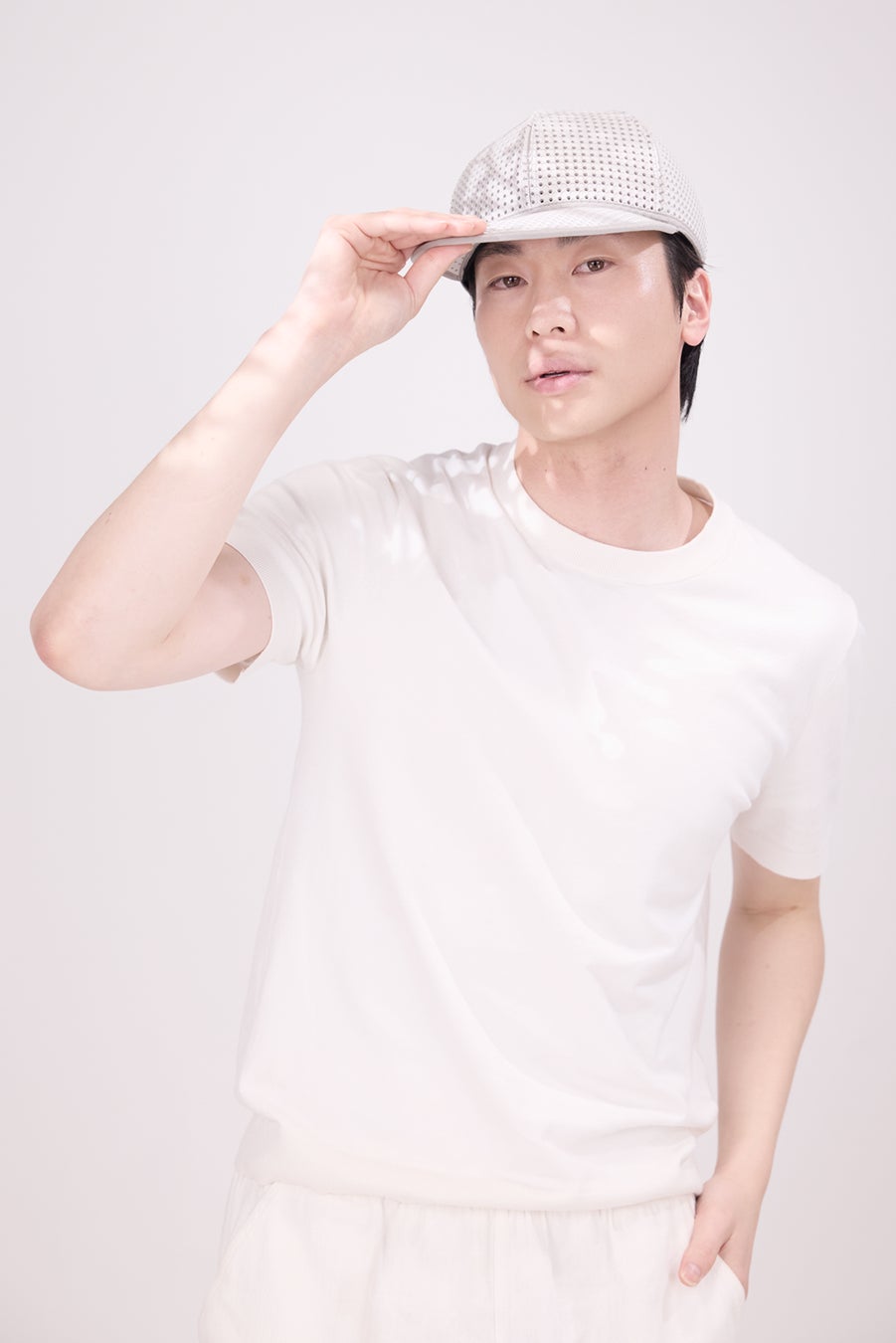 一体成型で使われることの多いEVAを生地として再構築し、軽量性、耐久性、保形性を実現。「バッグに求められるタフな機能性を帽子に落とし込んだらどうなるか?」という問いに対し、130年以上の歴史を持つ<Tokio hat>が呼応。本来、帽子用ではない難易度の高い異素材を、長年培われた木型設計と縫製技術によって、美しいシルエットを持つプロダクトへと仕立て上げました。