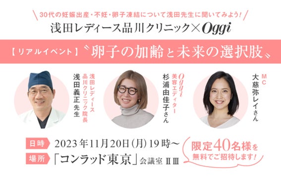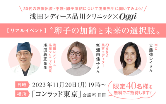浅田レディース品川クリニック×Oggiイベント「卵子の加齢と未来の選択肢」限定40名様を対象に11月20日(月)開催!
