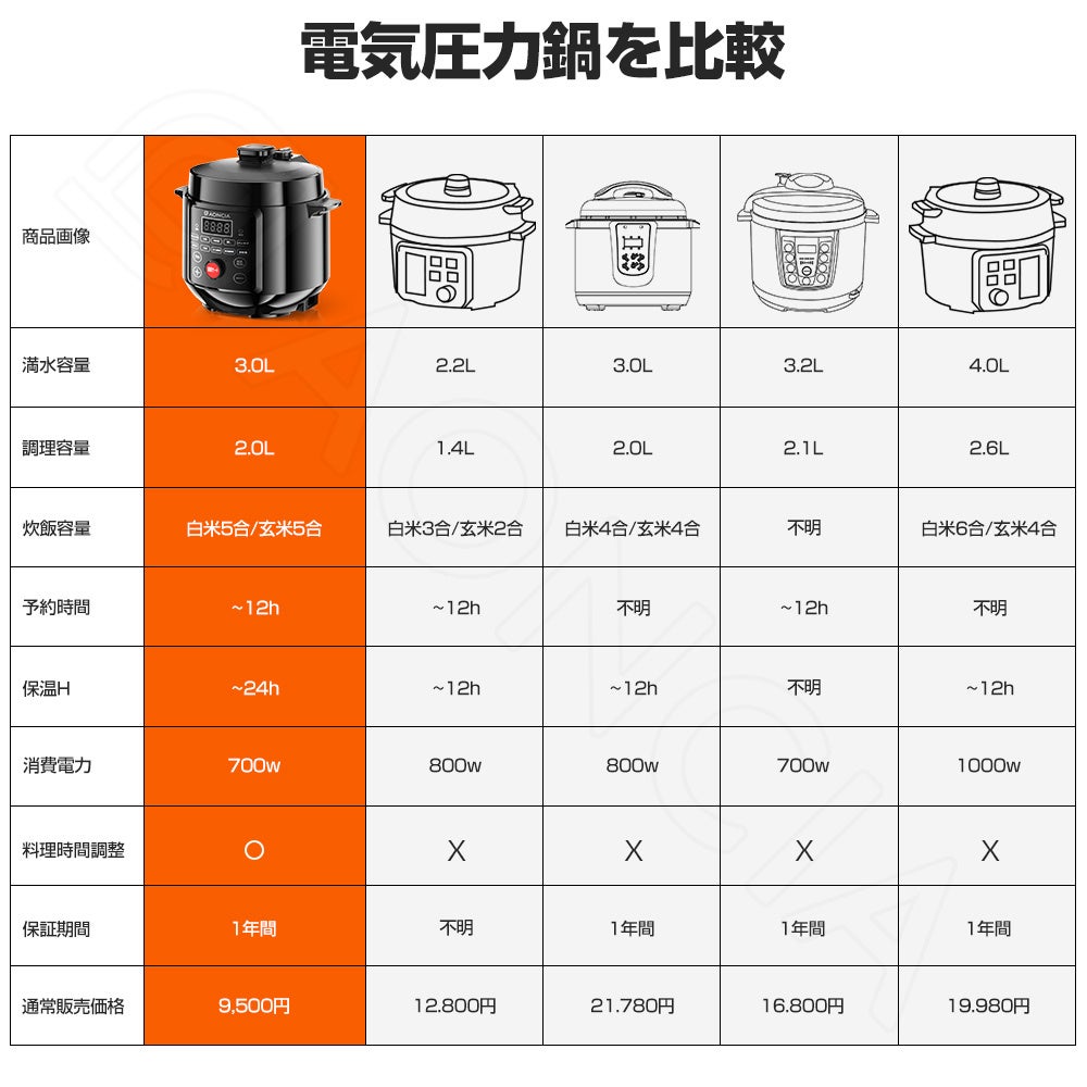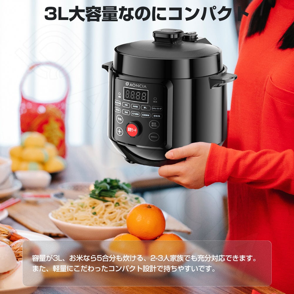 電気圧力鍋 3L 炊飯/煮込/蒸し/シチュースープ/肉料理/豆料理/角煮/低温調理/圧力調理/炒め 1台10役 時短調理 予約/保温機能付き