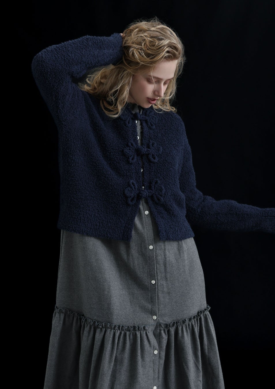チャイナ風のボタンをあしらった、ニットカーディガン。