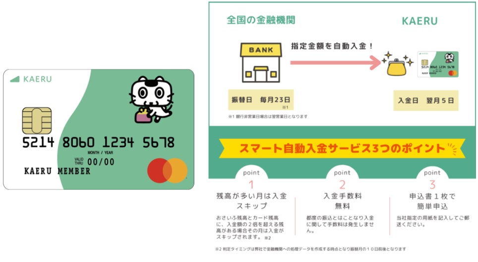 お買いものアシスタント機能付きプリペイドカードサービスKAERU(かえる)、ICチップ付きプリペイドカードおよびスマート自動入金(口座振替)機能を提供開始