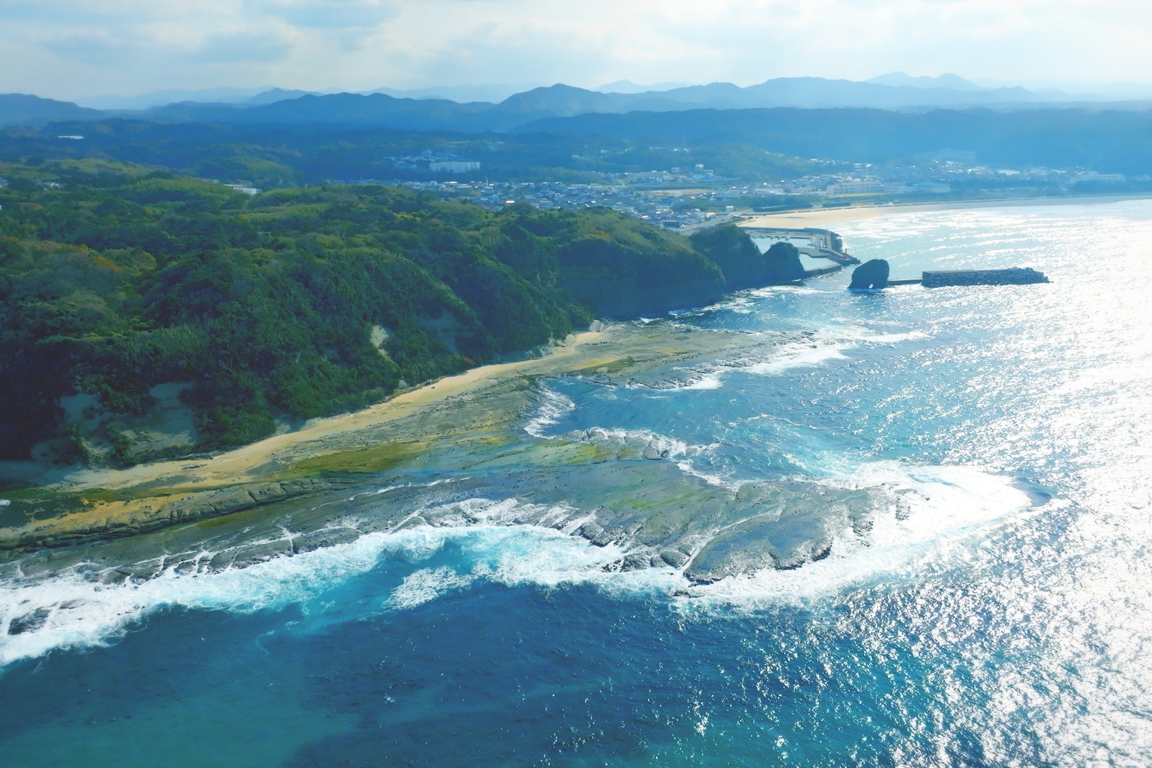 明治地震によって隆起した海床で環境省が選ぶ「かおり風景100選」に県内から唯一”磯のかおり”として選ばれ、国の天然記念物にも指定されている景勝地です。貝殻に含まれる炭酸カルシウムなどがコンクリート状に固まった「ノジュール」とよばれる岩も見どころです。また、ハートの形をした化石「ハッピーシェル」が点在しています。