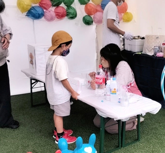 感染症が流行し、遊ぶ機会が減った子どもたちがワクワクする体験の場を提供したい、普段子育てを頑張っている保護者の方々がリフレッシュできる場を作りたいという想いからできたブースです。