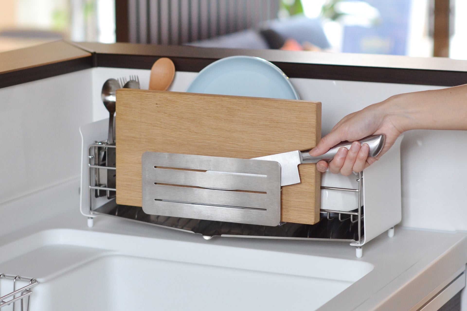 単独で置いてもUtaUの水切りラックにセットして使うこともできるので、洗った後に置き場に困る包丁とまな板を置いておけます。