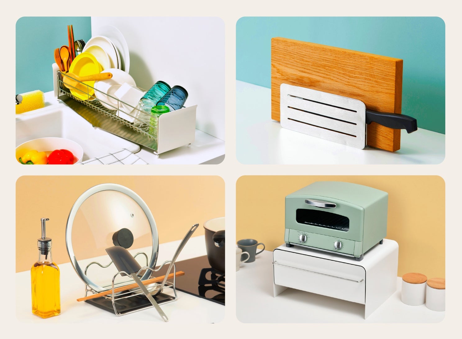 お料理中は常に慌ただしいもの。菜箸やお玉、鍋蓋などをどこに置こうか悩んだことはありませんか。キッチンマルチスタンドは、置き方を考えずにサッと置けてパッと手に取れるので、料理が捗ります。