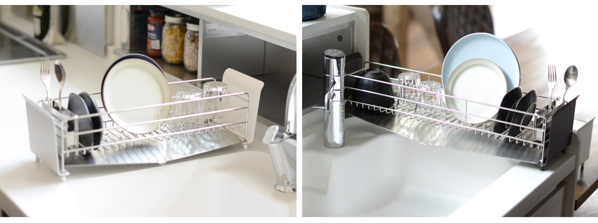 水切りラックを置くとどうしても生活感が出てしまう。でも洗い物にはやっぱり必要。そんなお悩みを解決するUtaUの水切りラック。カゴ内寸12㎝の超スリム型なので、シンク横の狭い隙間にも収まります。デッドスペースを上手に使うことで、キッチンを広々使えるのが嬉しいポイント。食洗機メインで手洗いは少ない方や、一人暮らしで洗い物が少ない人におススメです。