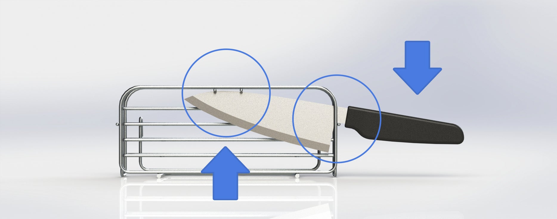 使いやすさの秘密はテコの原理を応用した構造。包丁の柄の重さを利用し、刃を浮かせるので包丁の刃を傷めません。
