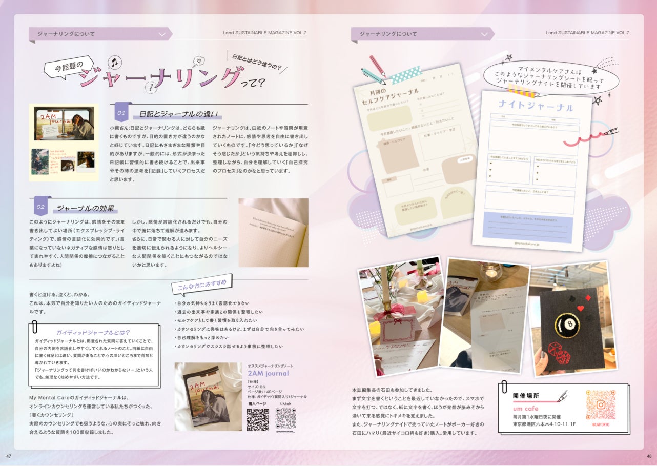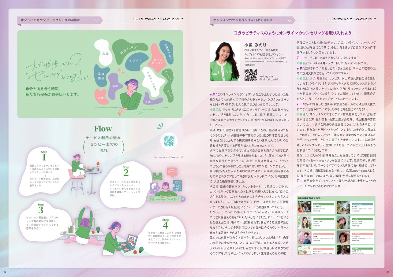 本誌は、Londヘアサロンの全セット面に設置され、施術中や待ち時間にお客さまが自由に手に取ることで、新しい価値観や社会とのつながりに触れるきっかけを創出しています。2026年度版となるvol.7では、「ウェルビーイング(Well-Being)」をテーマに、心身の健康や社会とのつながり、環境との共生といった観点から、これからの時代の豊かさを多角的に紹介しています。