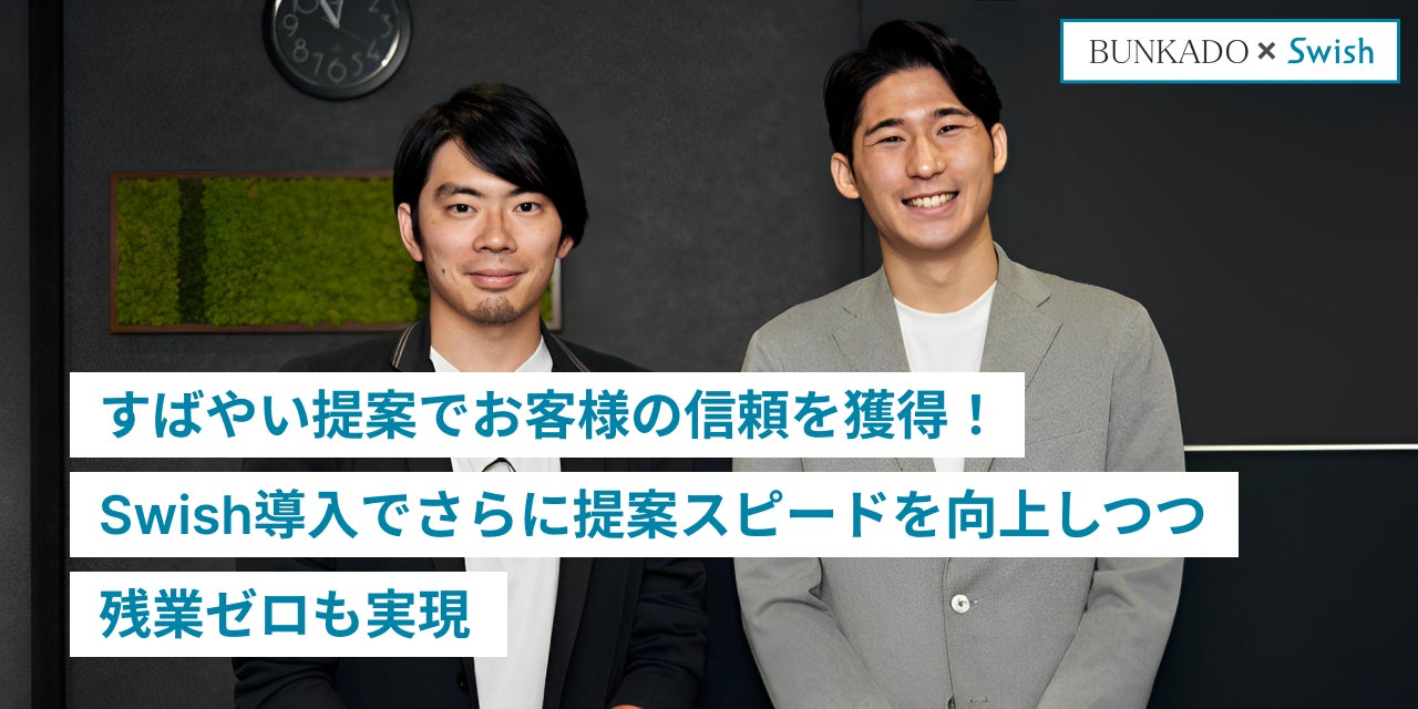 オフィス家具の提案DXサービス「Swish(スウィッシュ)」を開発・提供する株式会社Swish(本社:東京都品川区、代表取締役CEO:横澤 拓海)は、株式会社文華堂(本社:東京都豊島区、代表取締役社長:広瀬 隆、以下:文華堂)における「Swish」を活用した業務効率化の取り組み効果をまとめた事例インタビュー記事を、本日公開したことをお知らせします。