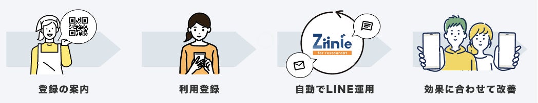 「Ziinie for Restaurant」は、飲食店の既存顧客に対する再来店促進シナリオを自動で配信することを可能にした新しいLINE自動運用ツールです。