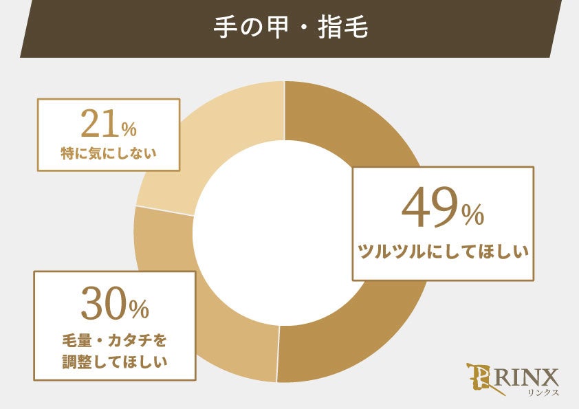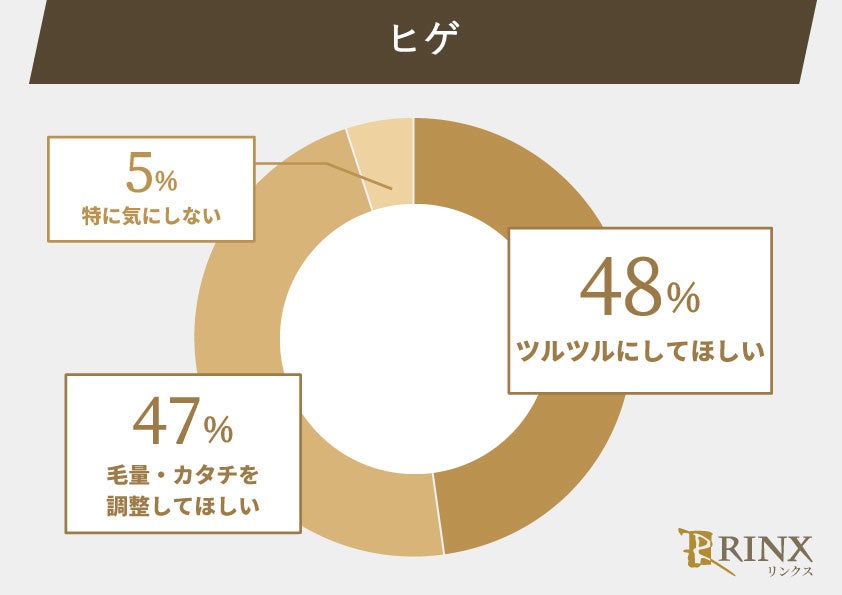 ヒゲの場合は「ツルツル」と「適度な毛量」どちらの意見も五分五分。胸毛・乳首のような「ツルツル」にして欲しいと回答した女性が多い部位もあれば、腕毛・脇毛・VIOのようにツルツルにするより「適度な毛量」に調整したほうが良いと回答した女性が多い部位もありました。全身脱毛をする男性も増えていますが、「自分よりツルツルだと引け目を感じる」「ナルシストっぽい」という印象をもつ女性も少なくありません。また、適度に毛が生えていることで男らしさを感じられるという方もいらっしゃるのではないでしょうか。好みが分かれる部位もあるため、女性目線を意識するなら女友達やパートナーに聞いてみるのも良いでしょう。