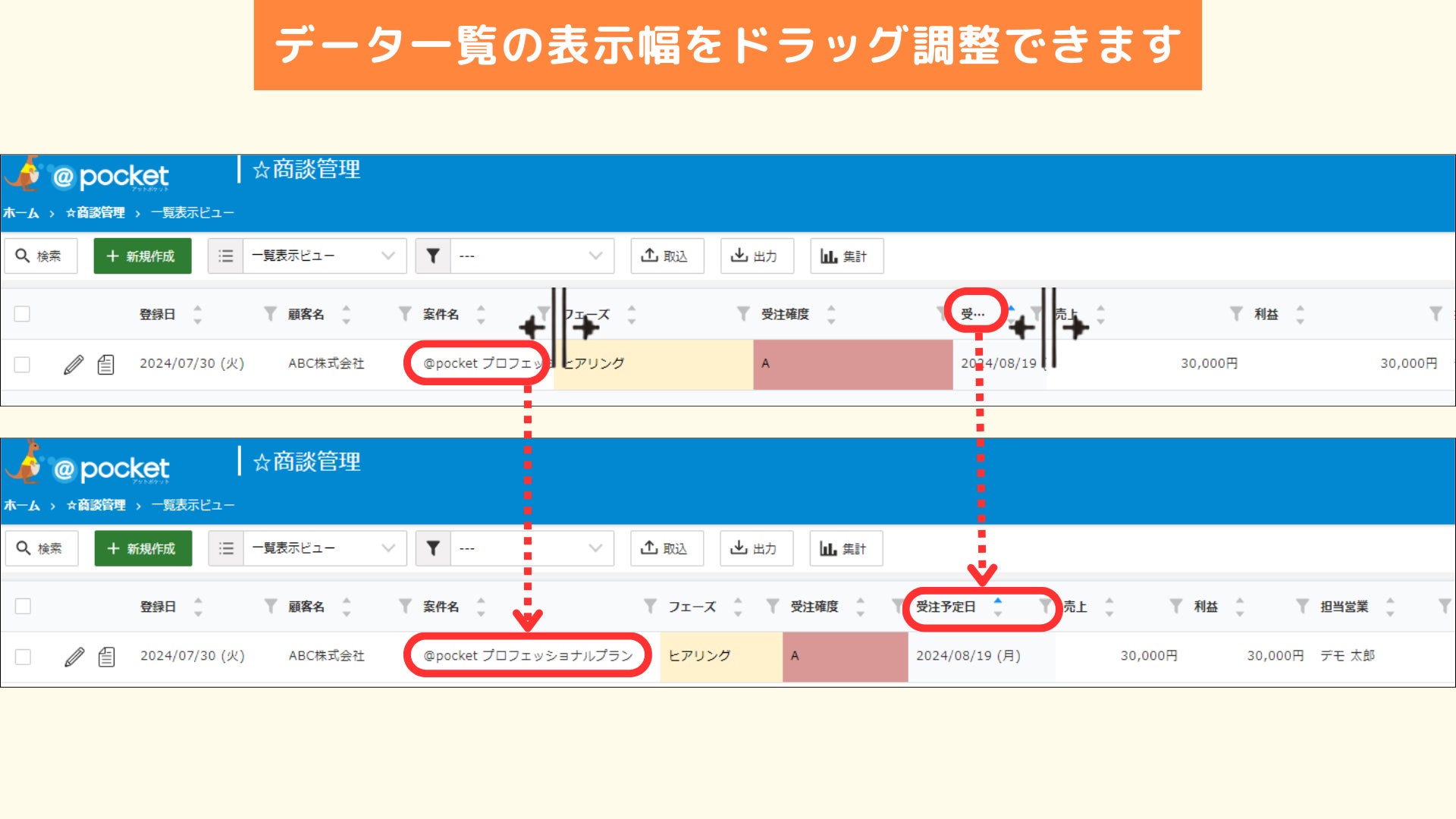 一覧ビューでの表示幅を個人単位でマウスで調整できるようになります。