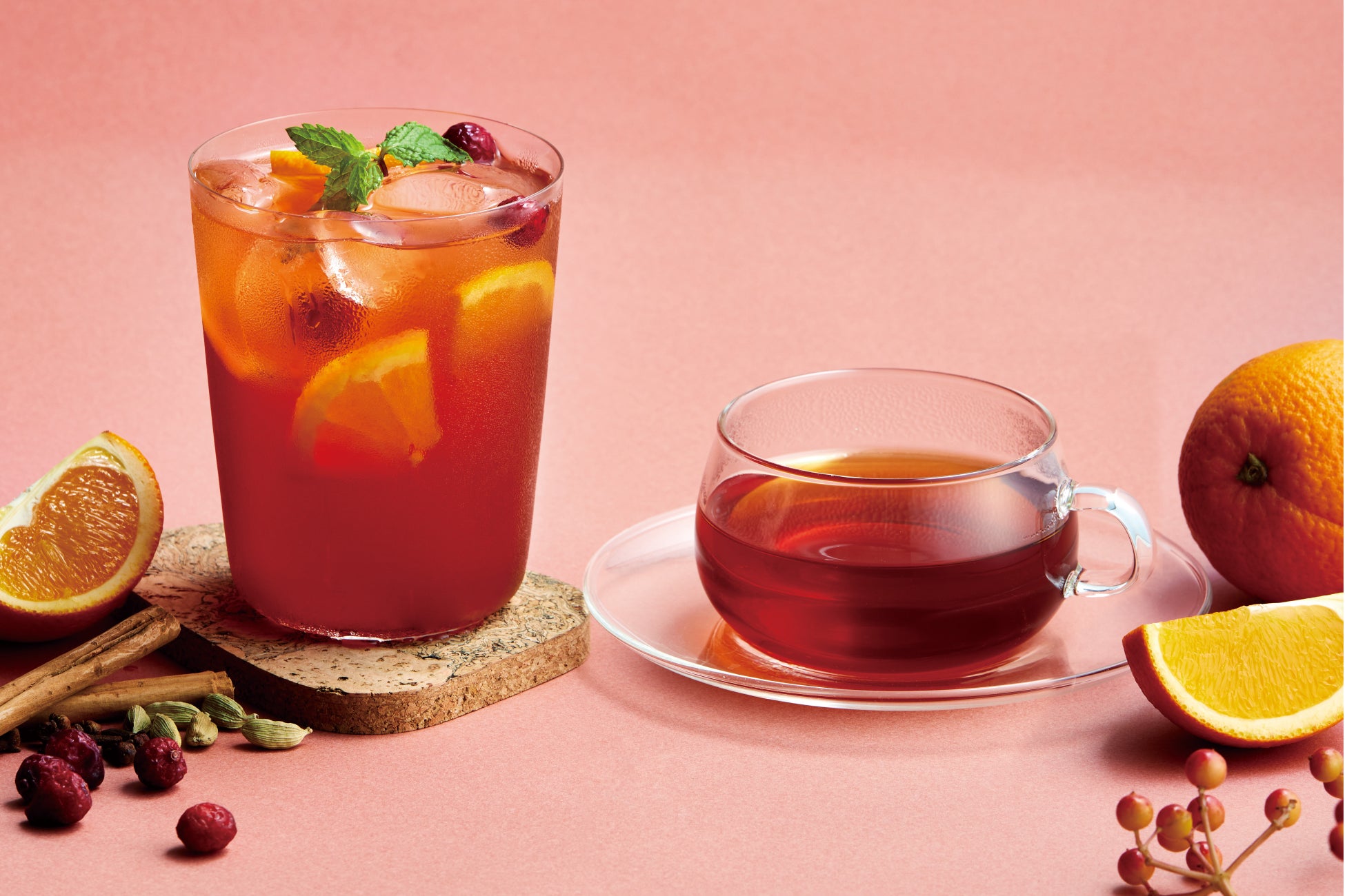 また最近注目を集めている台湾紅茶を使い、ワインにフルーツやスパイスを加えた「サングリア」をイメージしたフルーツティーも新登場。台湾紅茶を代表する品種の紅玉紅茶に、シナモンなどのスパイスとオレンジやミックスベリーシロップを組み合わせた、フルーツの爽やかな甘みとスパイスのリッチで奥深い味わいを感じるノンアルコールドリンクです。