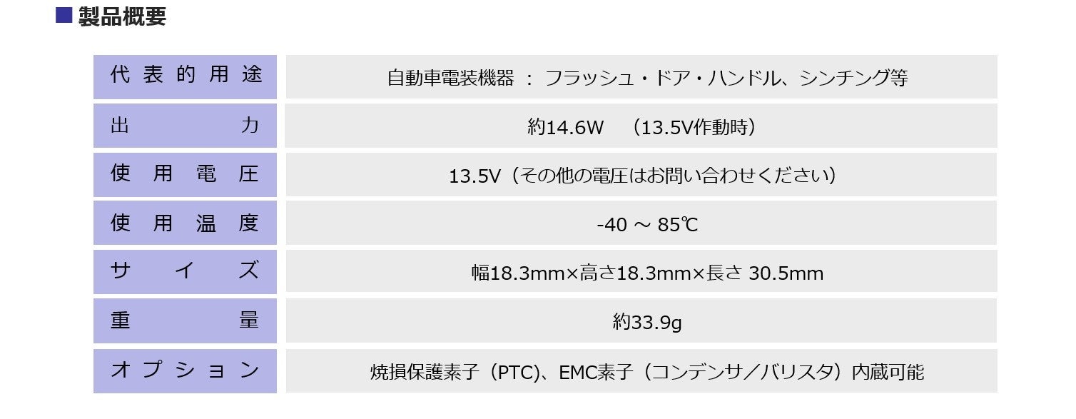 フラッシュ・ドア・ハンドル等に最適な自動車電装機器用モーター「SC-266X」の販売を開始