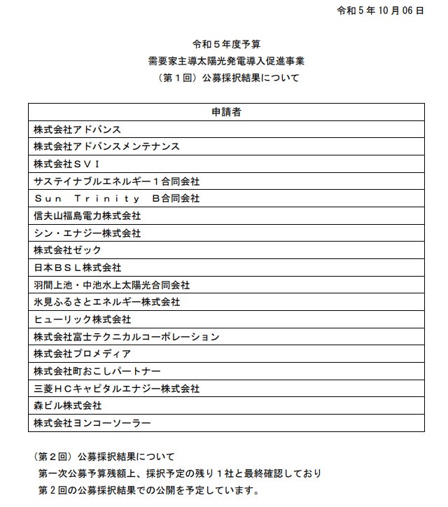 令和5年度「需要家主導太陽光発電導入促進事業」の採択について