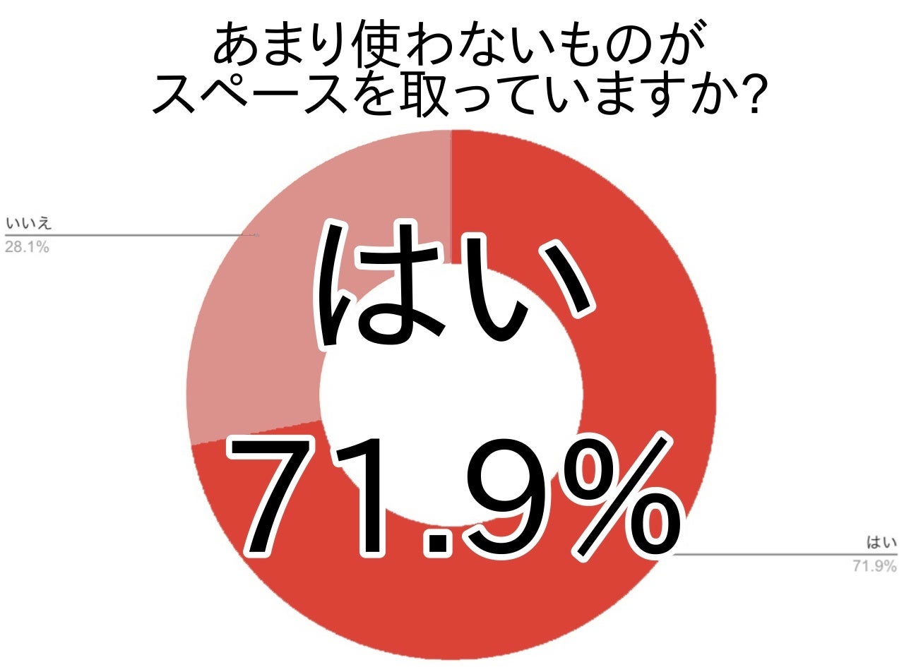 71.9%の方が、使用頻度の少ないものに収納スペースを割いていると感じているという結果がでました。