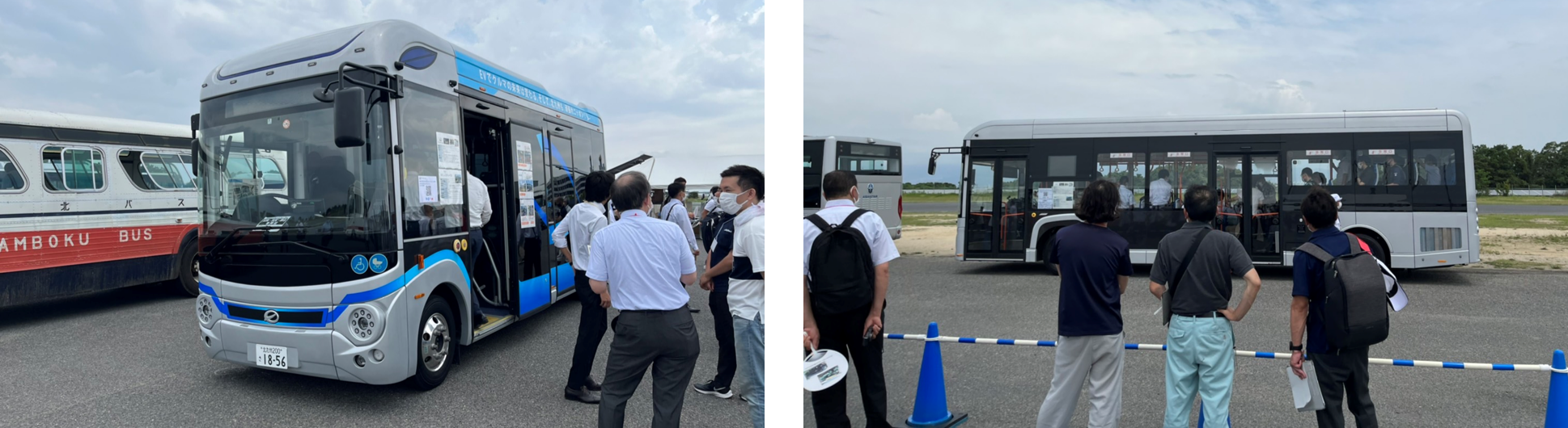 小型コミュニティEVバス(6.99m)と大型EV路線バス(10.5m)を出展し、当日は約880名の方にご来場いただきました。