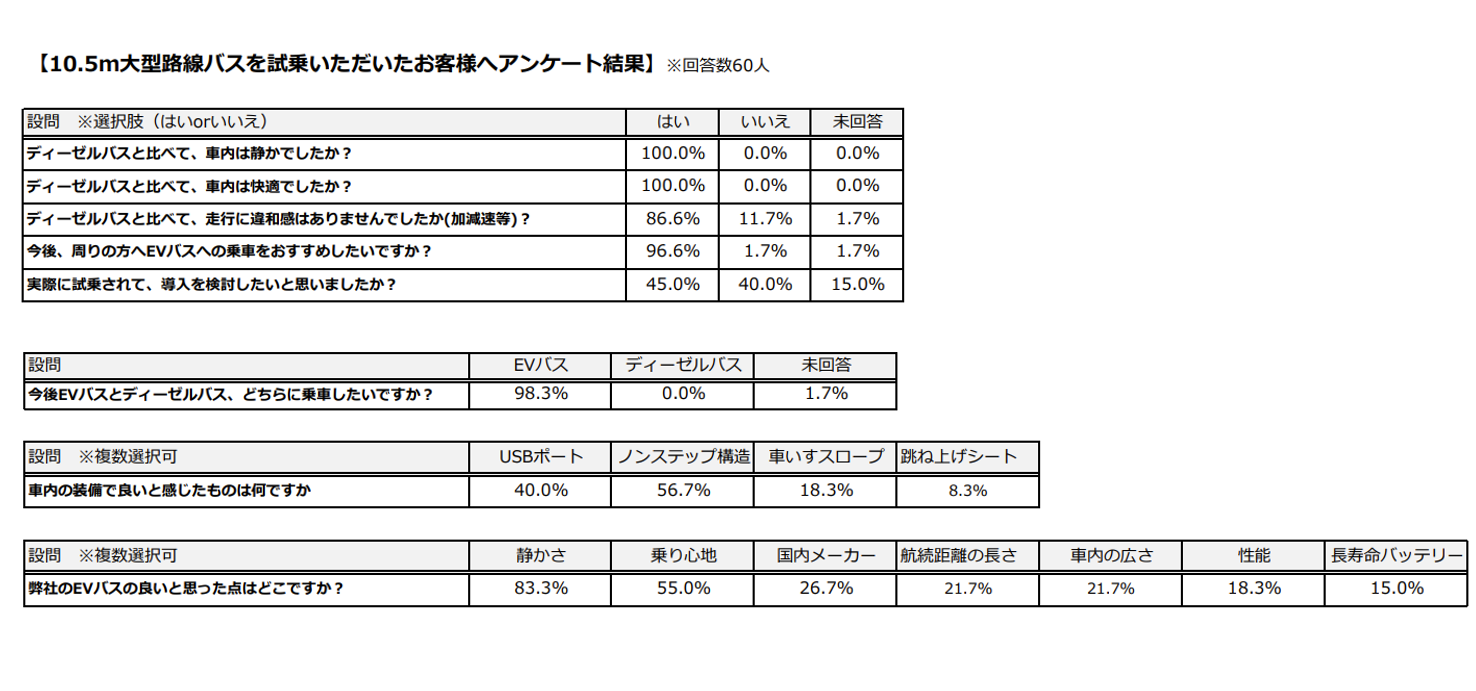 ・試乗いただいた大多数のお客様に、当社EVバスの魅力を体感していただきました。