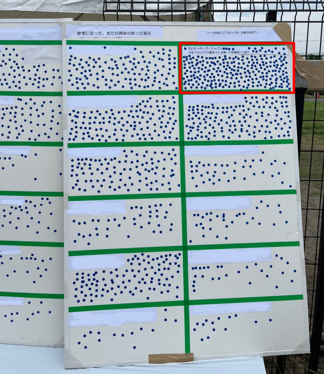 ご来場者の皆様に投票いただいた「参考になった・興味のあった展示」に関する会場アンケートでは出展バスの中で第一位を獲得することができました。